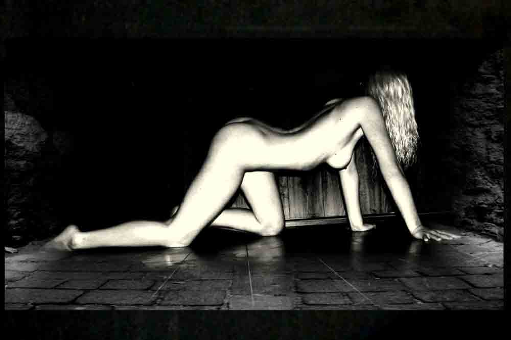 Das Spiel aus Licht und Dunkelheit lässt die Figur zu einer Skulptur aus Linien und Spannung werden.